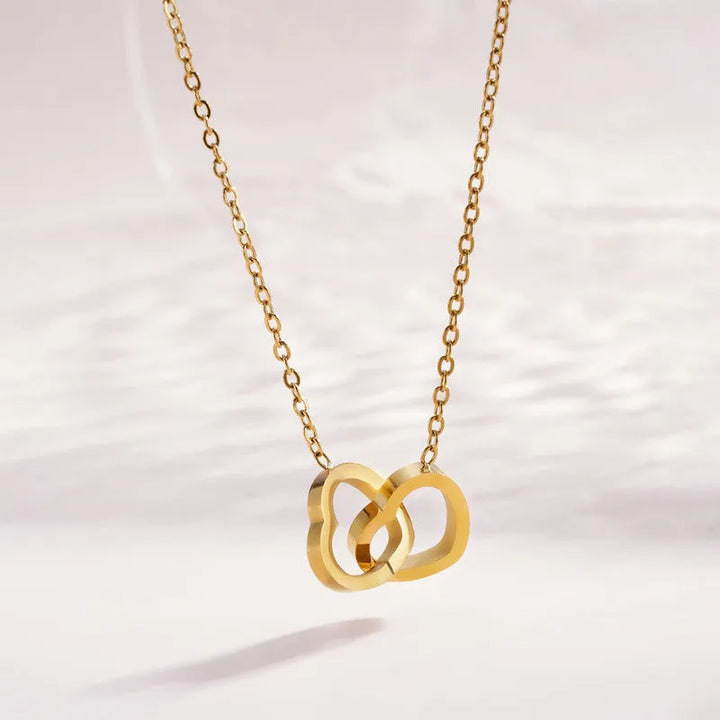 Celebrate the power of connection with the Tied in Love Necklace by Ishavri Jewels. Designed with two interlocked heart outlines, this elegant pendant symbolizes unbreakable love, unity, and togetherness. Crafted from premium stainless steel and finished with a radiant 18K gold plating, this piece is both anti-tarnish and waterproof, made for lasting beauty.